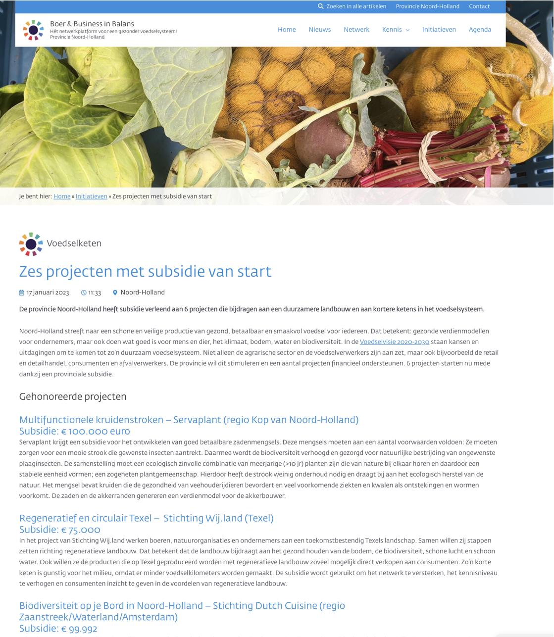 Deze pagina bevat meerdere iframes onder de kop “Video's” met title-attributen die geen informatie geven over het type inhoud. Bijvoorbeeld de title-attributen: "Regeneratieve landbouw met Kees Hotting", “Biodiversiteit op je Bord – icoonproject Voedselvisie”, “Jelle Beemsterboer over de Noord-Hollandse Voedselvisie” en andere.