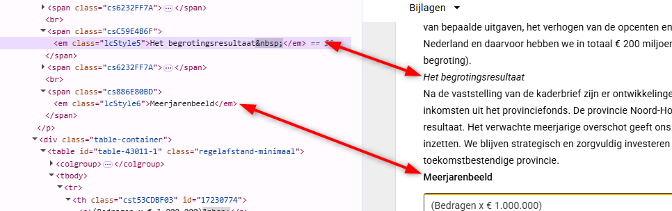 Op deze pagina zijn de volgende teksten onjuist gemarkeerd met em-elementen in plaats van met de juiste kop-elementen: "Het begrotingsresultaat", "Meerjarenbeeld", "Doorlichting bestemmingsreserves", "Bijdragen aan derden".