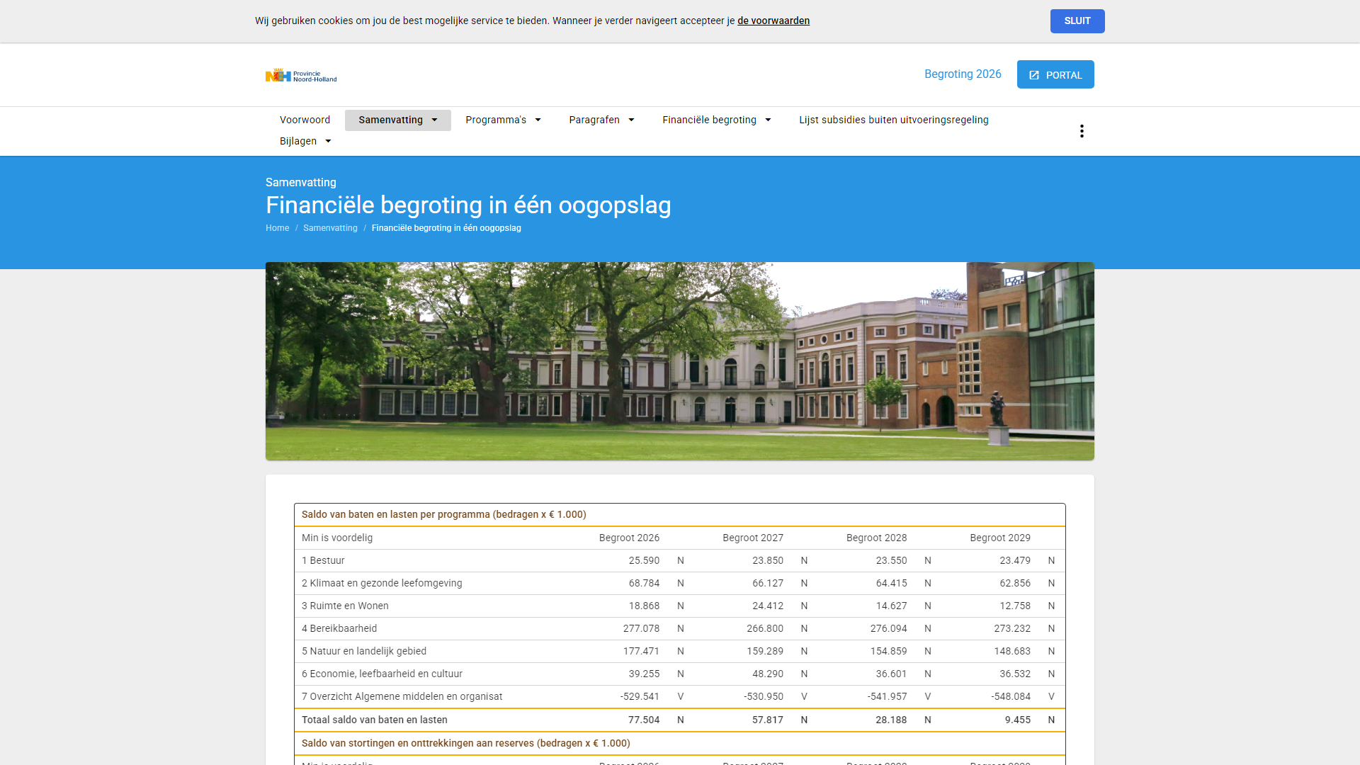 Alle pagina's op de website financien.noord-holland.nl en noordholland.begroting-2026.nl