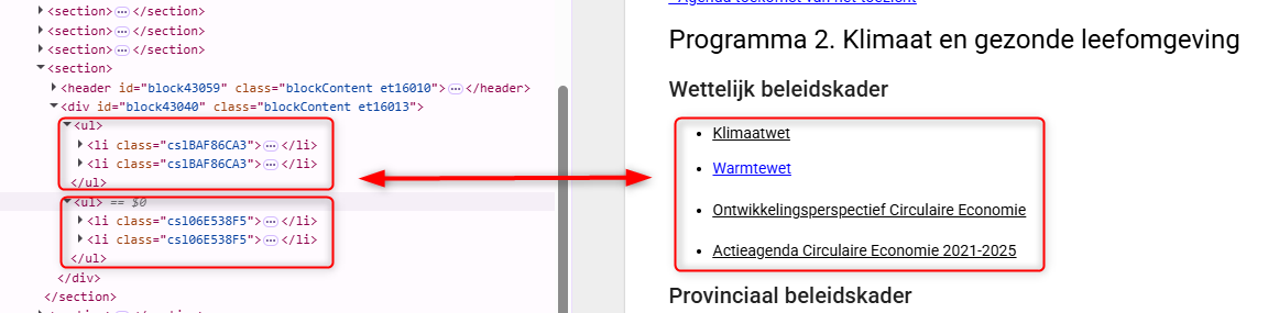 In dit pdf-document staat op pagina 19 onder het kopje "Instrumenten" een lijst met 11 items. In de tags staan echter twee aparte lijsten.