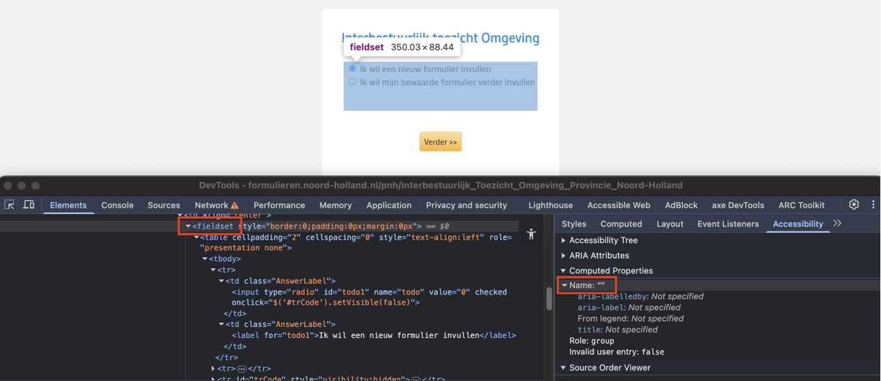 Audit digitale toegankelijkheid van website formulieren.noord-holland.nl
