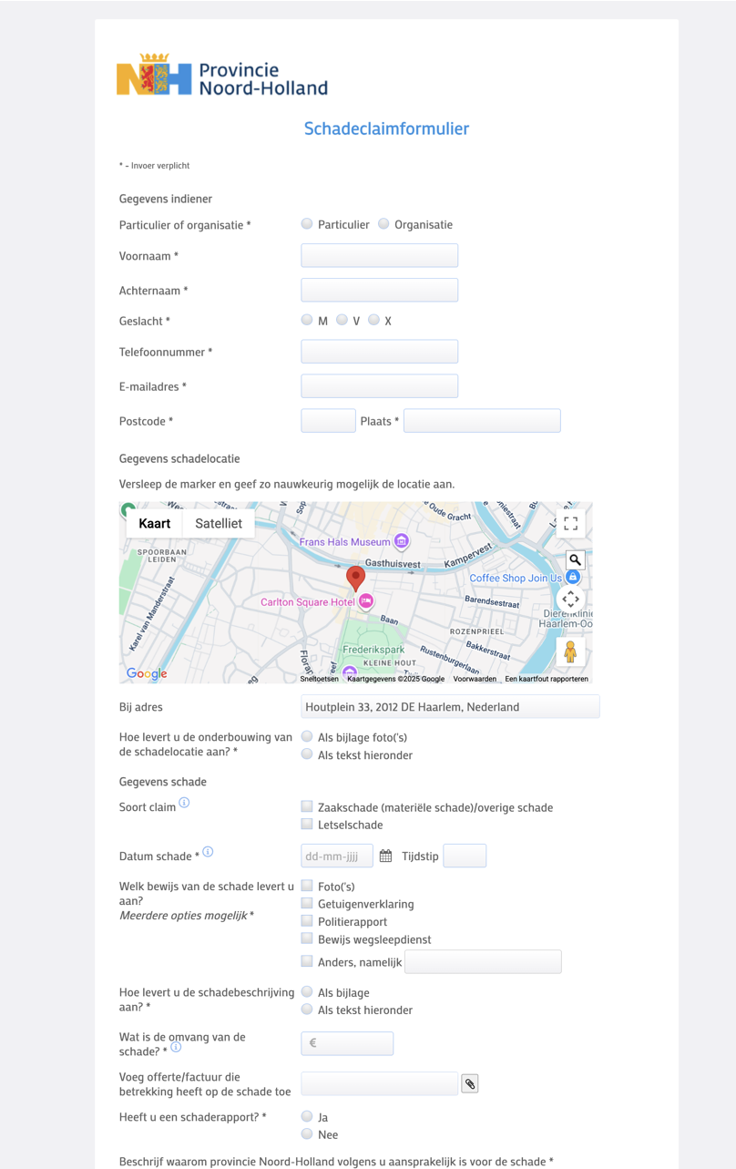 Link naar pagina: https://formulieren.noord-holland.nl/pnh/Schadeclaims_II_Provincie_Noord-Holland