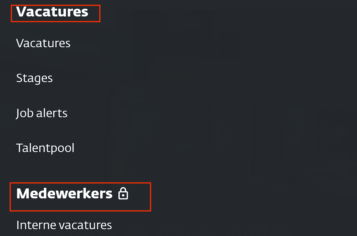 Koppen zijn niet gemarkeerd als koptekst: Visueel lijkende koppen, zoals "Vacancies" en "Employees" in het mobiele menu en "Hier ga je werken", zijn in de code niet als echte kopteksten gemarkeerd. Dit belemmert gebruikers van hulpsoftware (zoals schermlezers) om de paginastructuur te scannen en snel naar relevante secties te navigeren.