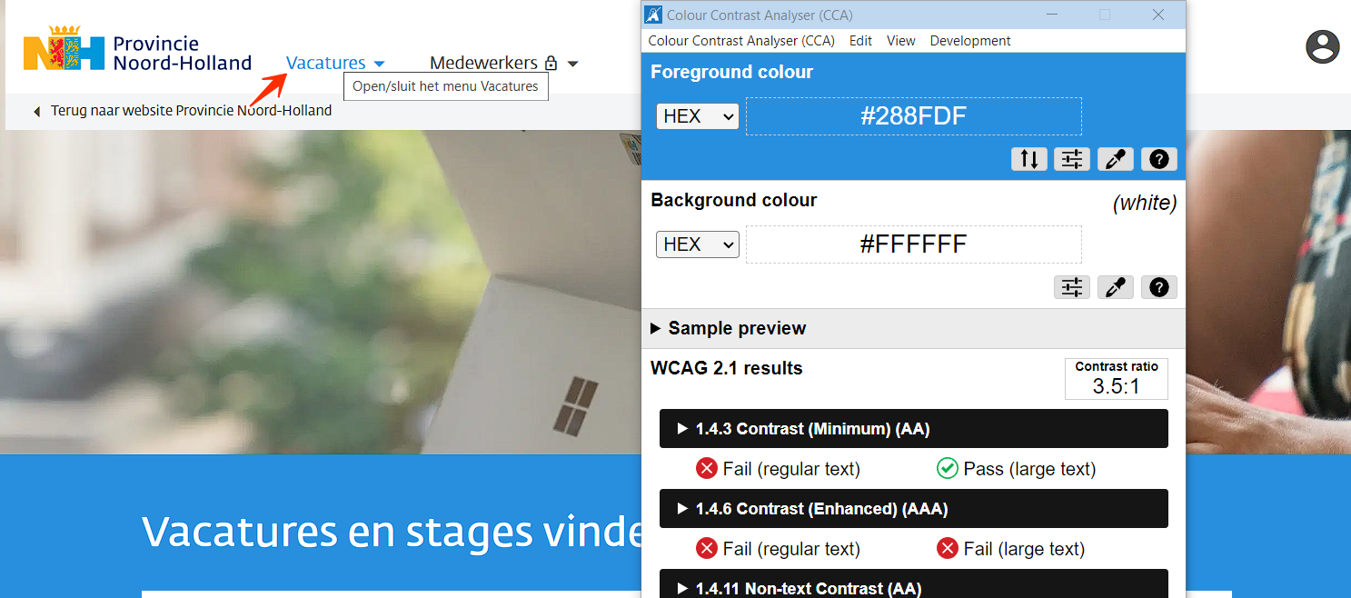 Content audit digitale toegankelijkheid van website vacatures.noord-holland.nl