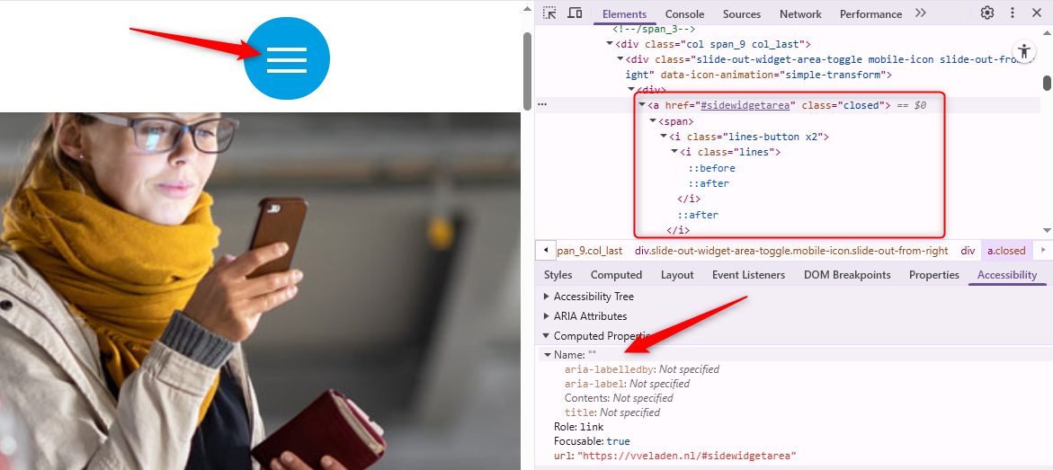 Afbeeldingen die met de Figure-tag zijn geplaatst, moeten altijd een beschrijving (alt-tekst) hebben. De Figure-tag is alleen bedoeld voor informatieve afbeeldingen. Schermlezers lezen de alt-tekst voor, zodat blinde bezoekers ook alle informatie tot zich kunnen nemen. Omdat de alternatieve tekst nu ontbreekt, lezen schermlezers alleen “afbeelding” voor. Blinde bezoekers kunnen hierdoor het gevoel krijgen dat ze inhoud missen.