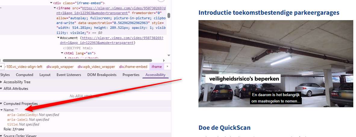 Het type content in het iframe is niet beschreven in het title-attribuut