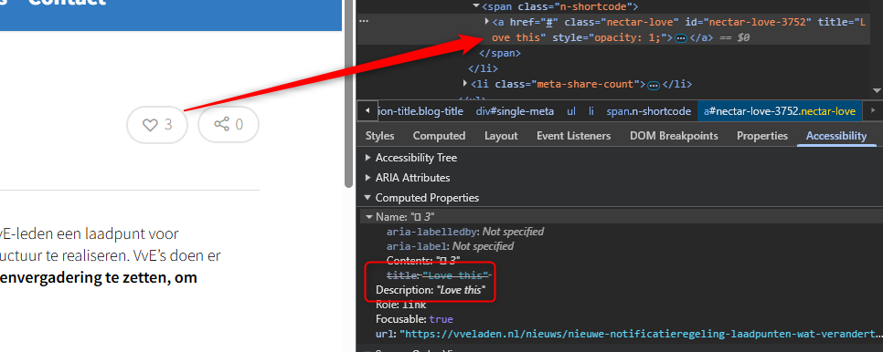 Hetzelfde probleem geldt voor de socialmedia-iconen die bij hover boven het icoon “Share” verschijnen, met titles zoals “Share this”, “Tweet this”, en ook op andere pagina’s: https://vveladen.nl/nieuws/laadpunten-in-uw-vve-zorg-dat-het-past-op-het-elektriciteitsnet/ en op pagina https://vveladen.nl/author/c-poortmrae-nl/ met het “heart”-icoon dat als link naast elk artikel staat.