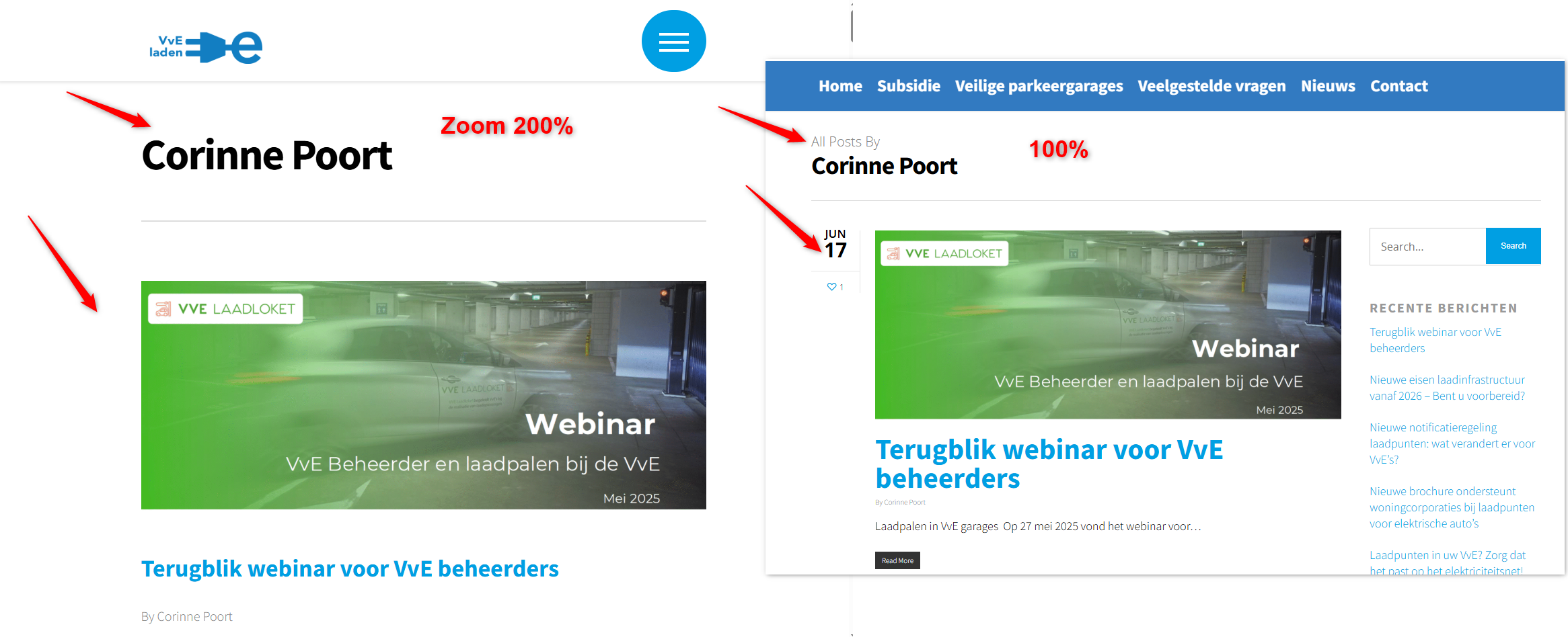 Bezoekers die inzoomen tot 400% kunnen niet meer alle tekst lezen