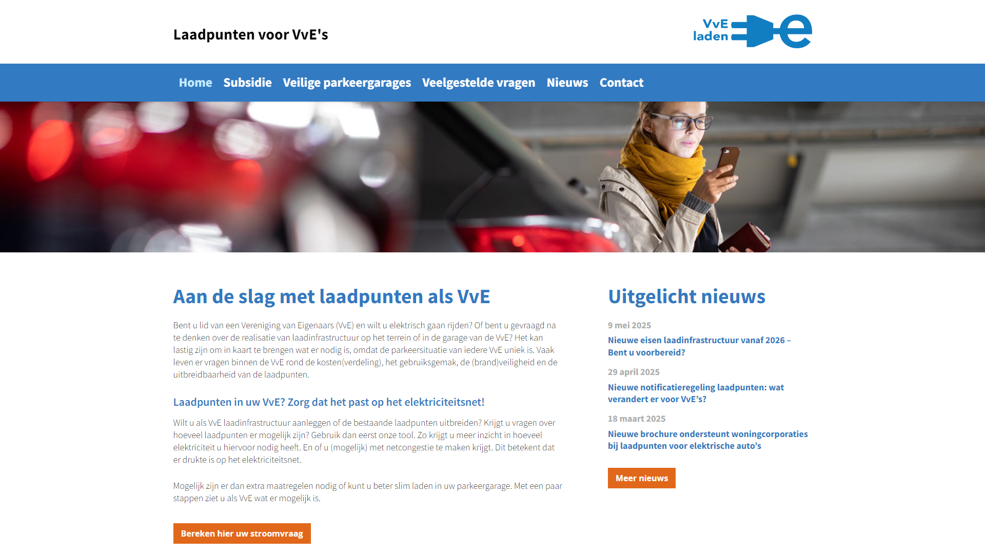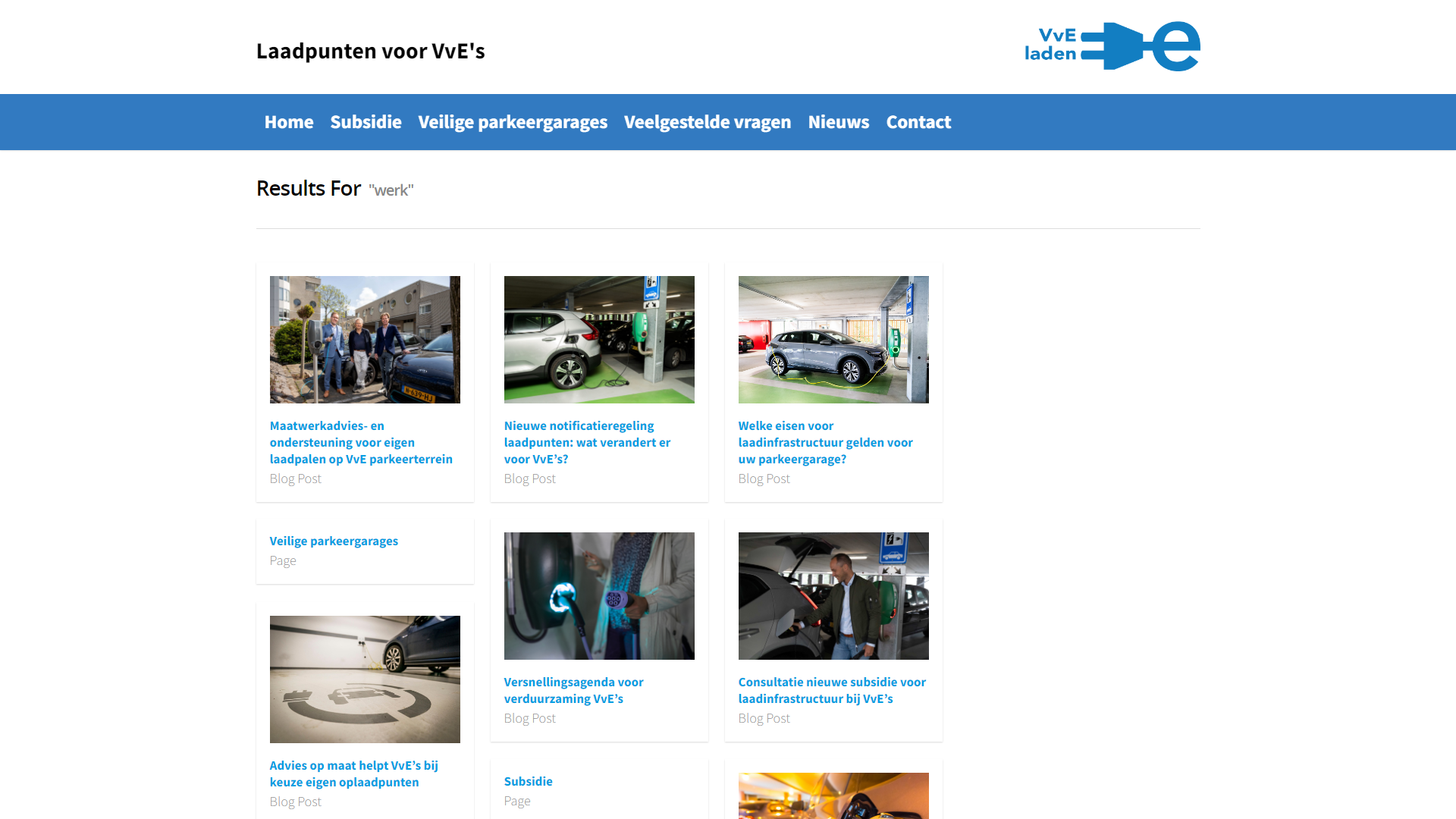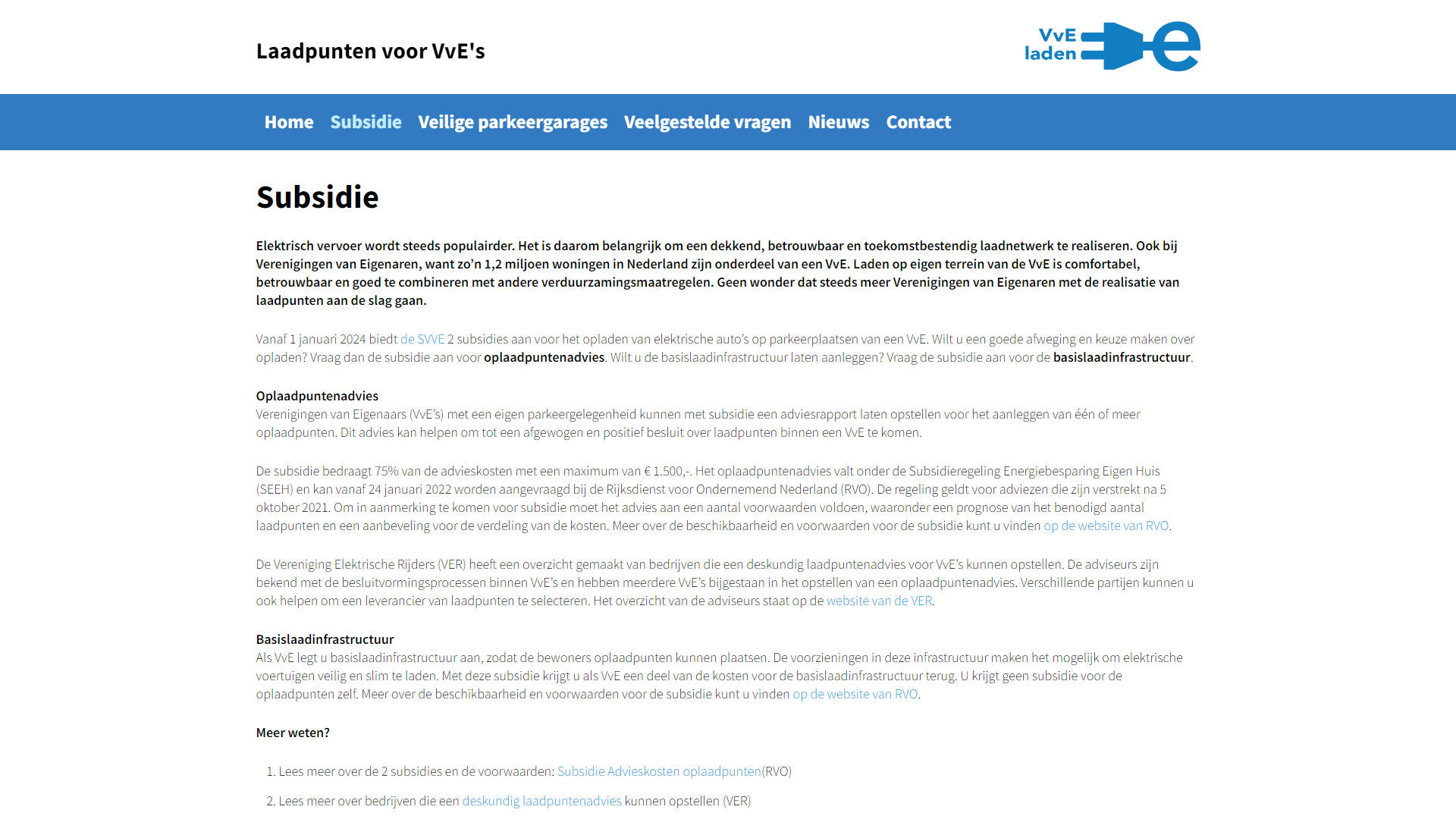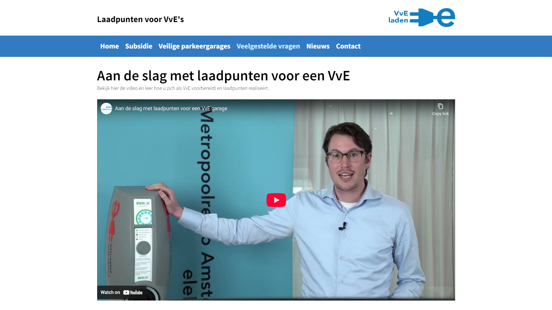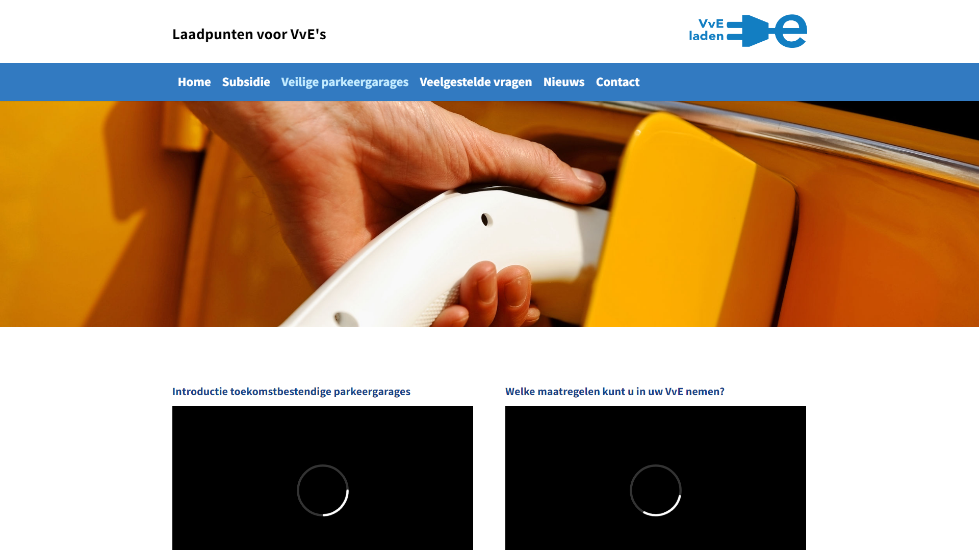 Deze pagina bevat twee iframes met in de title-attributen "Ondersteuning en advies voor eigen laadpalen op VvE terrein" en "Aan de slag met laadpunten voor een VvE garage".