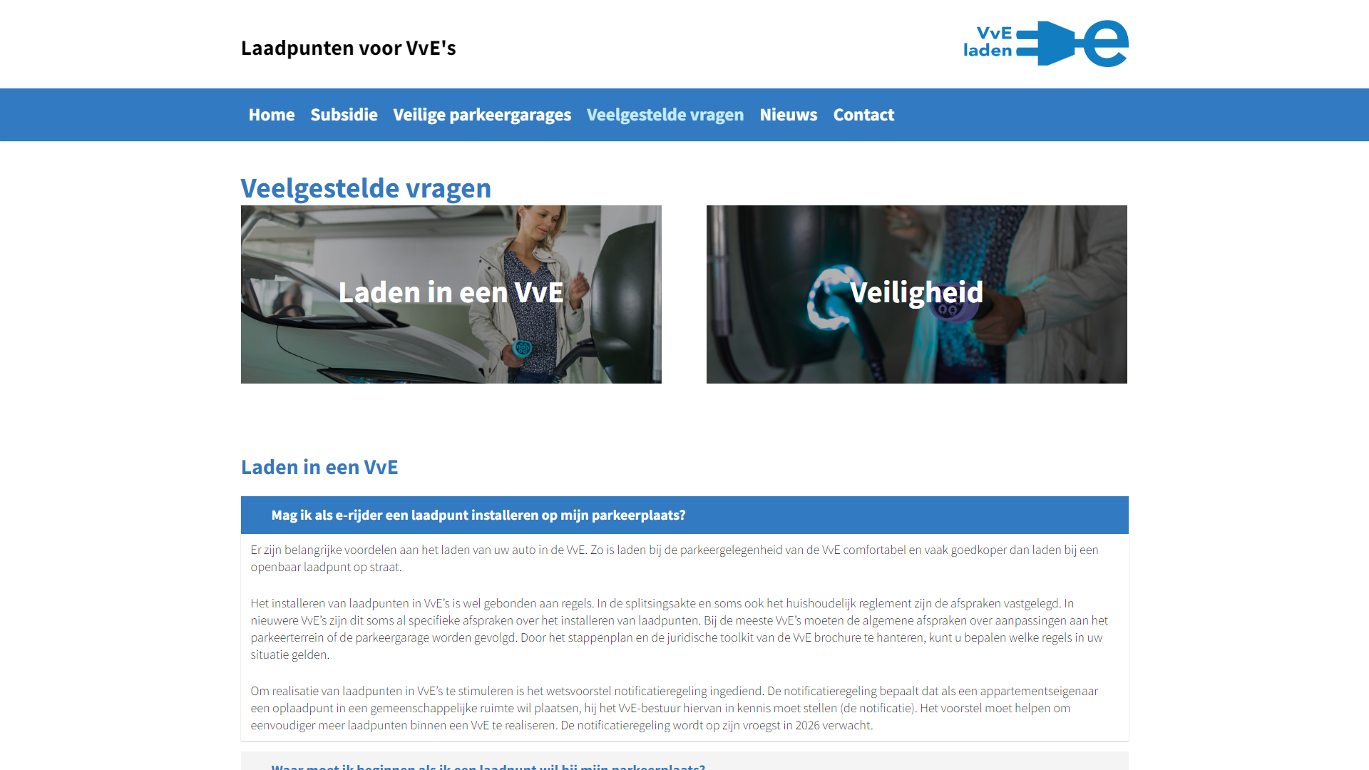 https://vveladen.nl/nieuws/nieuwe-notificatieregeling-laadpunten-wat-verandert-er-voor-vves/ met de koppen “Van toestemming naar melding”, “Wat betekent dit voor VvE’s?”, “Zet laadinfrastructuur dit jaar op de agenda” en ook op andere pagina’s.