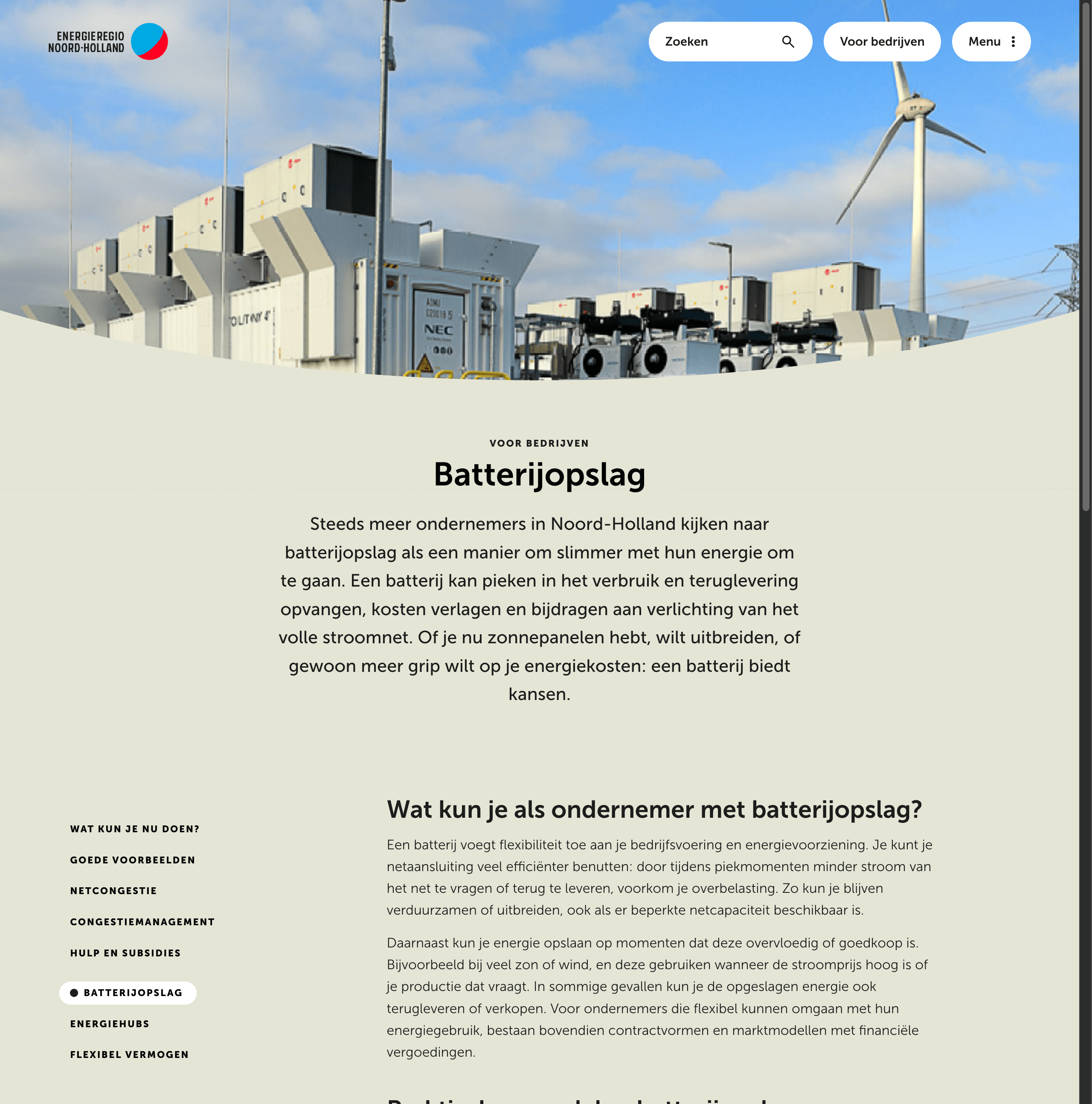 Op deze pagina wordt onder de kop "Zo pak je batterijopslag aan" het strong-element onjuist gebruikt voor opmaakdoeleinden. Hele zinnen zijn met het strong-element omgeven om ze vet weer te geven.