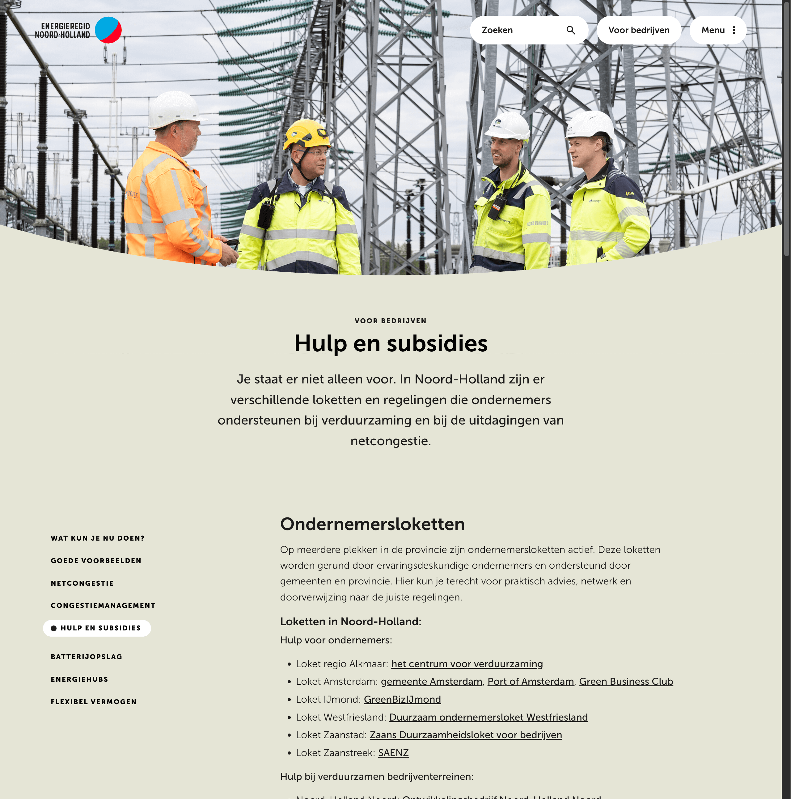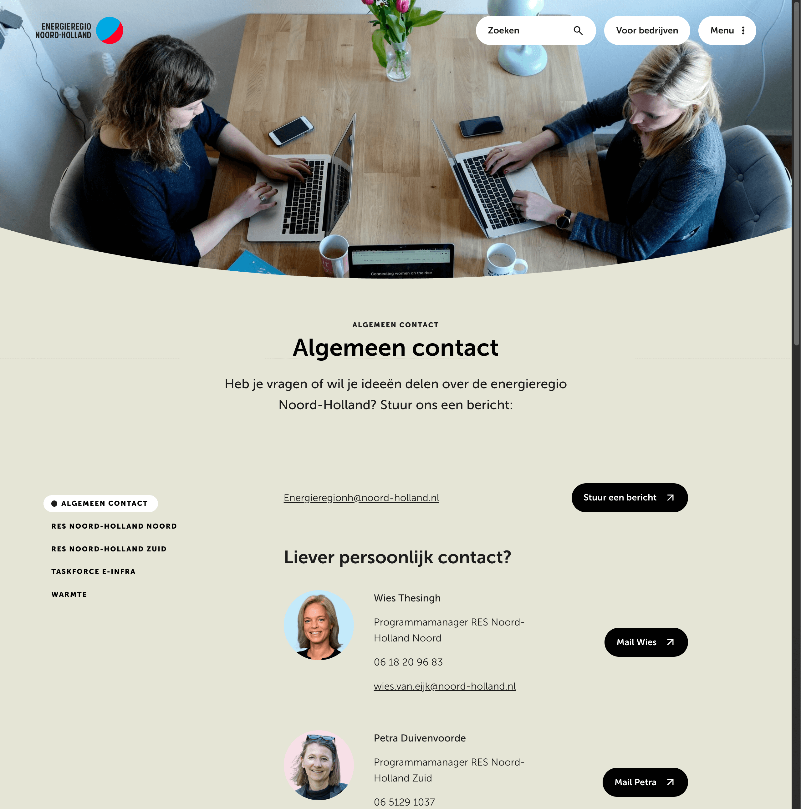 Op deze pagina staat een submenu in de zijbalk. De toegankelijkheidsproblemen die bij dit submenu zijn vastgesteld, zijn hetzelfde als die al eerder zijn beschreven voor het vergelijkbare submenu op de pagina “Algemeen contact” https://energieregionh.nl/contact/algemeen-contact. Deze problemen hebben betrekking op de volgende succescriteria: 1.3.1, 1.4.10, 2.4.3 en 2.4.11.