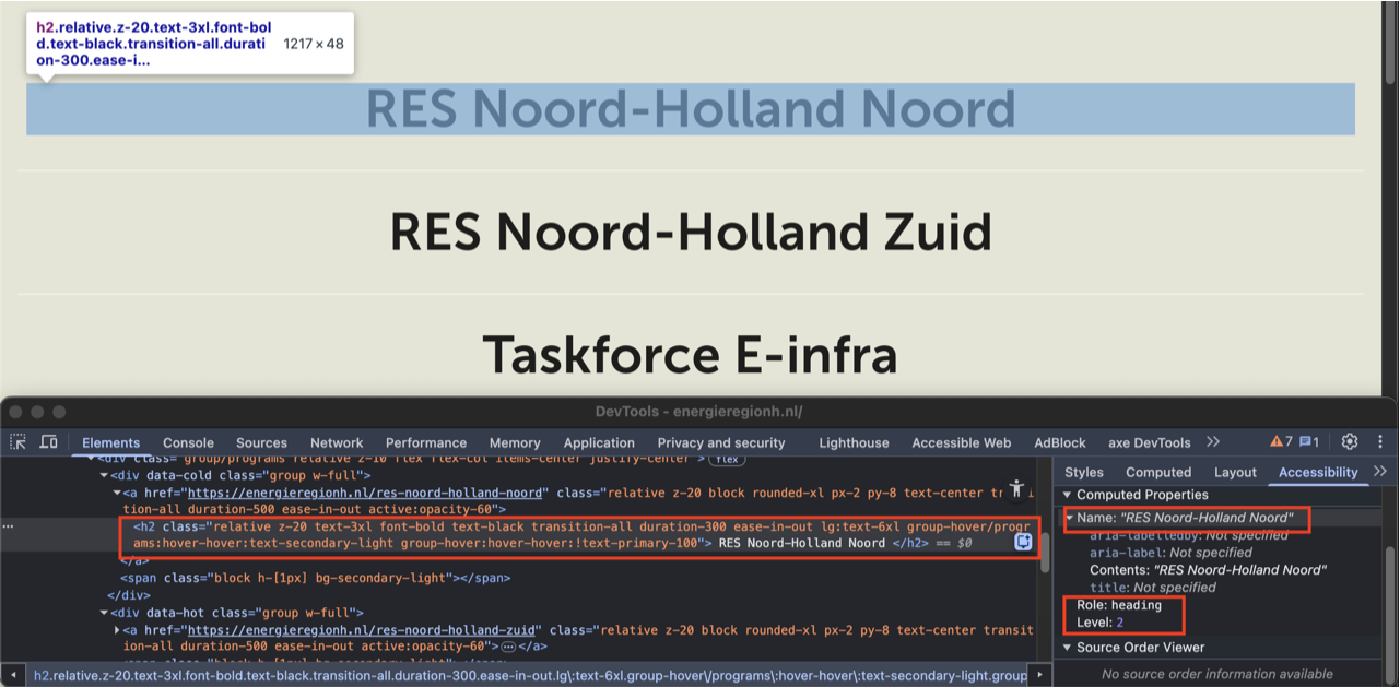 Audit digitale toegankelijkheid van website energieregionh.nl