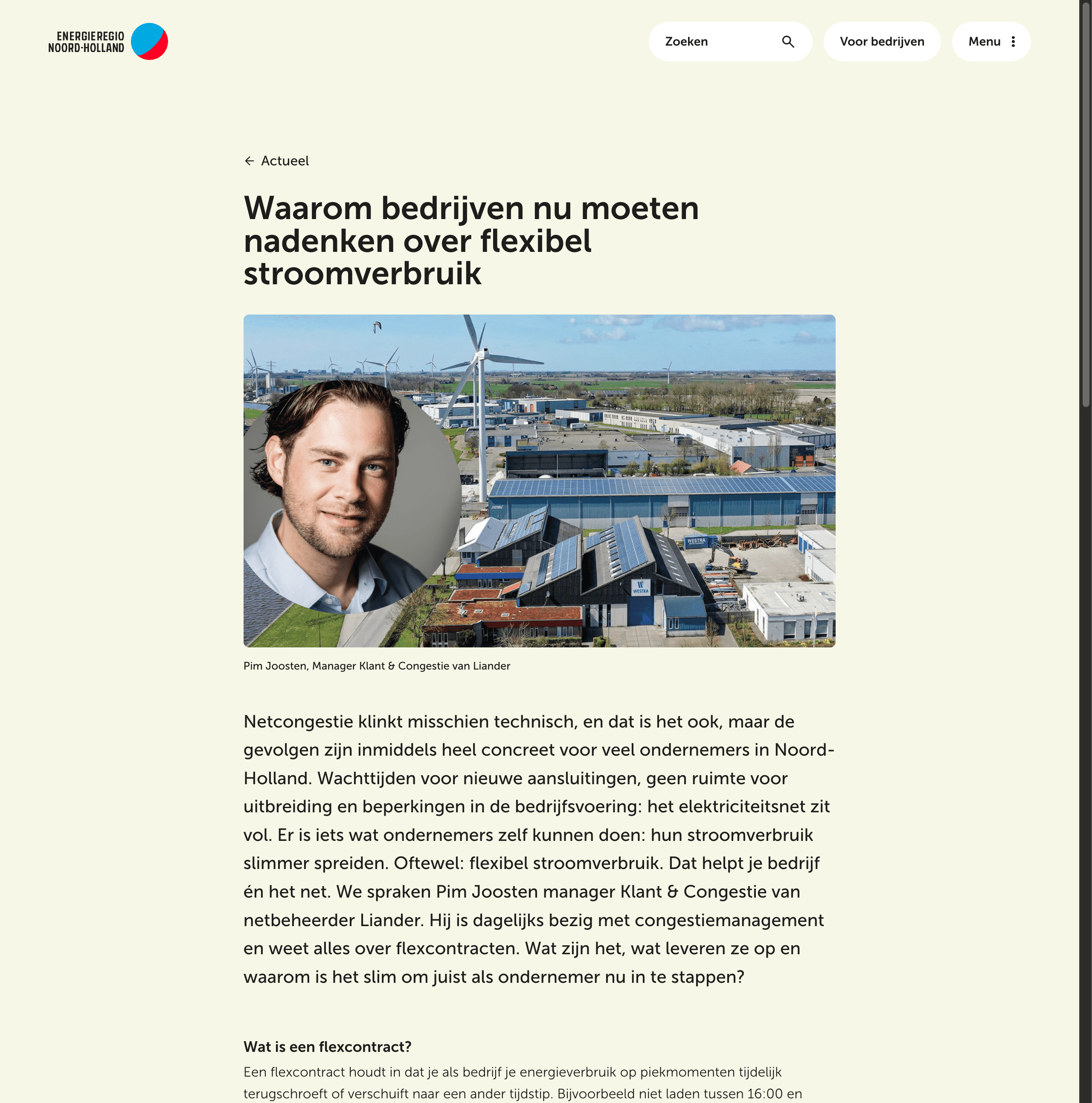 Op deze pagina staat een informatieve afbeelding met als bijschrift “Pim Joosten, Manager Klant & Congestie van Liander”. Deze afbeelding heeft een leeg alt-attribuut.