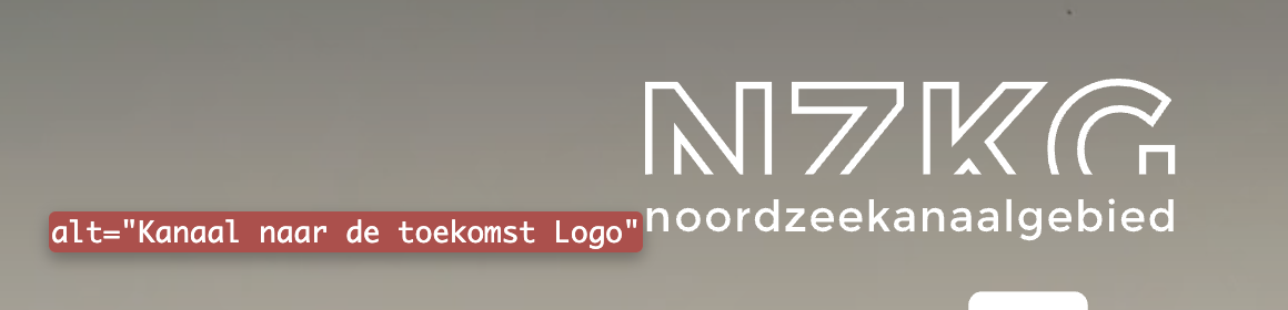 Het logo bovenaan de website toont de volledige tekst “NZKG noordzeekanaalgebied kanaal naar de toekomst”, maar de alt-tekst luidt slechts “Kanaal naar de toekomst Logo”. Het logo in de footer toont de tekst “NZKG noordzeekanaalgebied kanaal”, terwijl het tekstalternatief eveneens “Kanaal naar de toekomst Logo” is.
