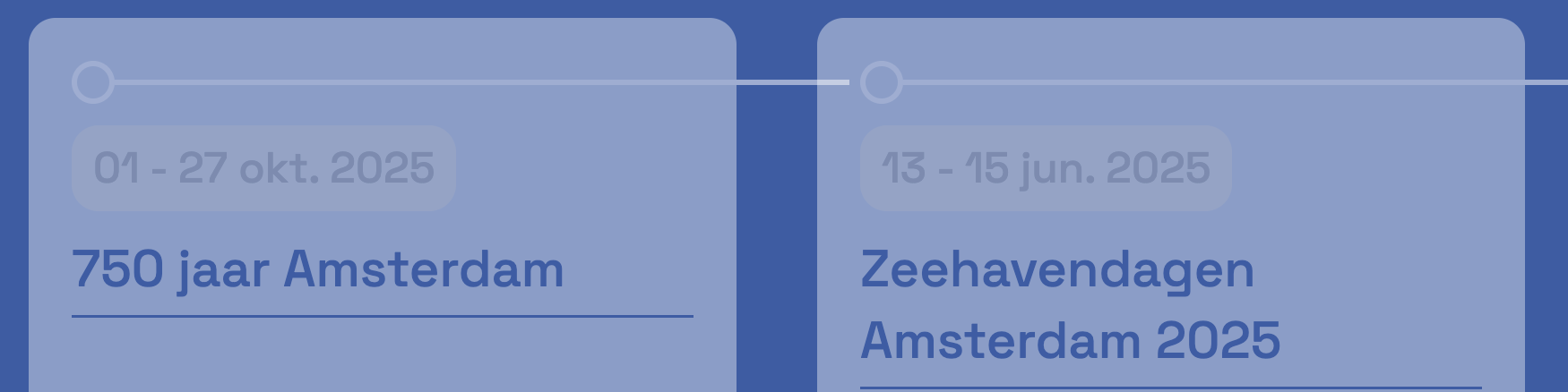 De tekst “Zeehavendagen Amsterdam 2025” heeft eveneens een onvoldoende contrastverhouding van 2,4:1, met blauwe tekst (#345DA8) op een blauwe achtergrond (#859ECB).