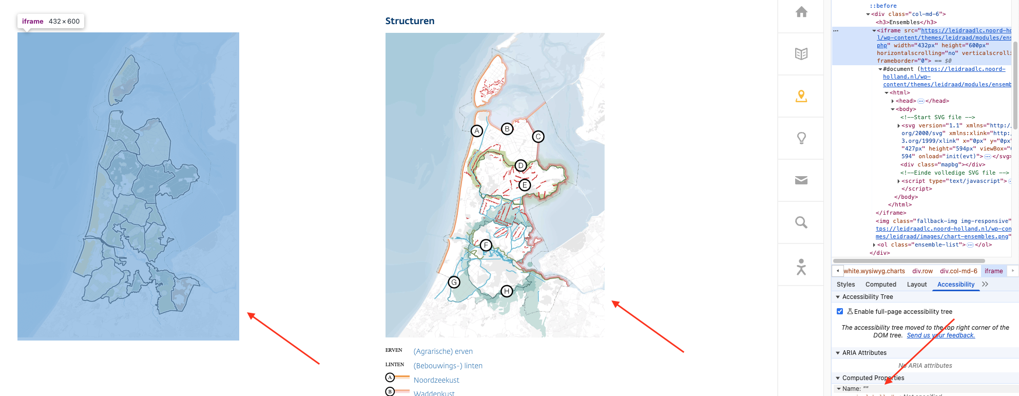 Wanneer de pagina wordt bekeken op een schermbreedte van 1400px en hoger, zijn er twee interactieve kaarten. De interactieve elementen op deze kaarten zijn niet toegankelijk via het toetsenbord. Wanneer een bezoeker met het toetsenbord navigeert, worden deze elementen overgeslagen. Alle interactieve elementen, dus ook links, moeten met alleen het toetsenbord te bedienen zijn.