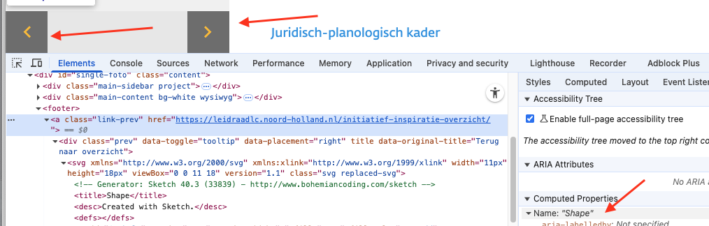 Op deze pagina fungeren afbeeldingen met een pijl-icoon als links, maar de toegankelijke naam is 'Shape', waardoor het doel van de link onduidelijk is. Zorg ervoor dat de linktekst duidelijk en beschrijvend is.