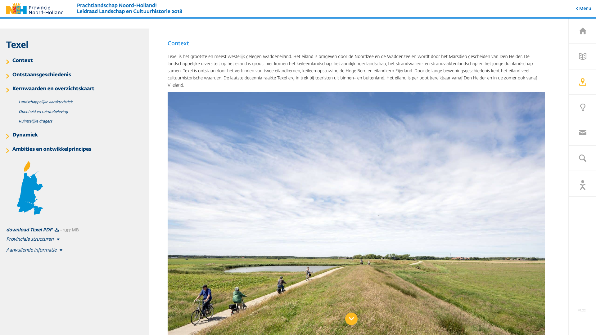 De problemen die optreden bij het broodkruimelpad en het navigatiemenu zijn omschreven bij de pagina “Texel”. Dit geldt ook voor de bewegende pijl-animatie.