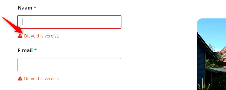 Voeg altijd zelf foutmeldingen toe aan het formulier. Controleer of er nog meer formulieren zijn die dit probleem hebben.