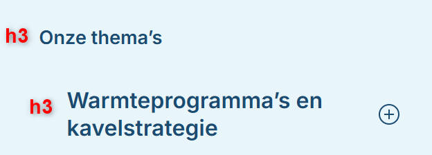 Op deze pagina bevatten in accordeons meerdere links de vage tekst “Lees verder”. Deze tekst beschrijft de bestemming van de link niet duidelijk genoeg en zorgt voor verwarring, vooral voor bezoekers met cognitieve beperkingen of voor degenen die schermlezers gebruiken.