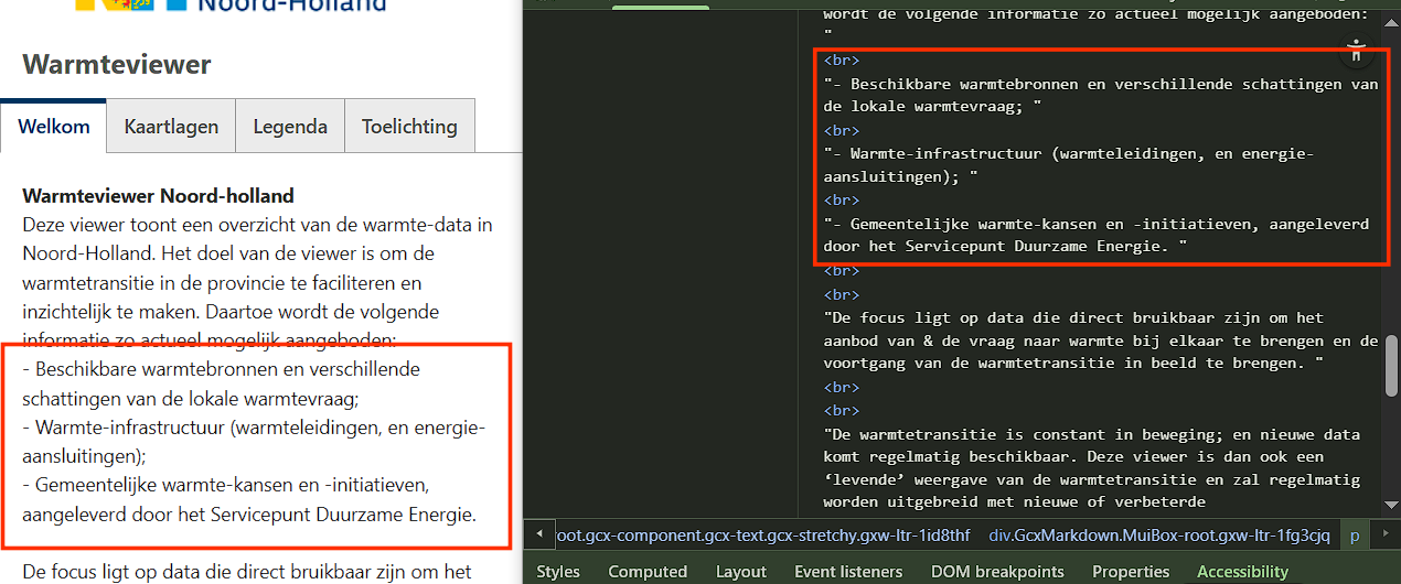 Hetzelfde probleem doet zich voor op de pagina https://geoapps.noord-holland.nl/GeoWeb/Viewer/?app=606075c8f75c4bb8beea5e9ff518cca9 in de sectie “Welkom”.