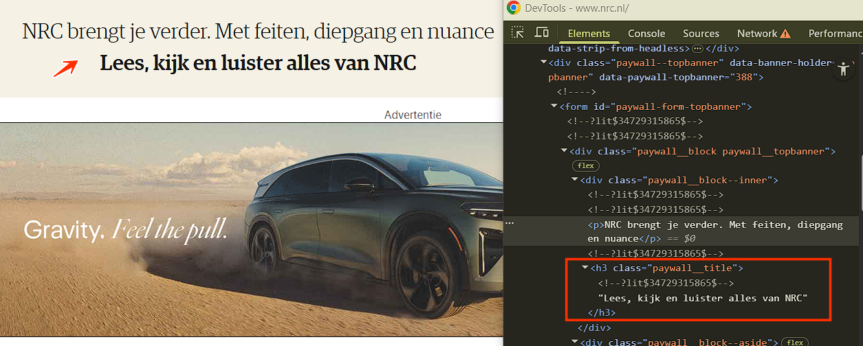 Dit probleem doet zich voor op de pagina https://www.nrc.nl/regio/ onder de kop “Begin direct met lezen”.