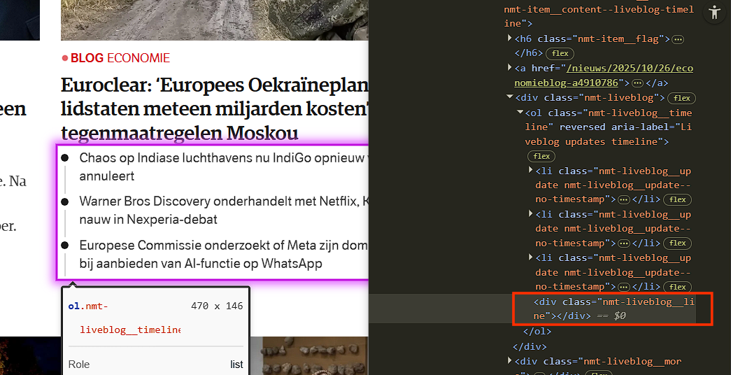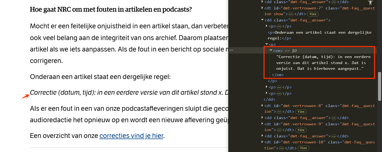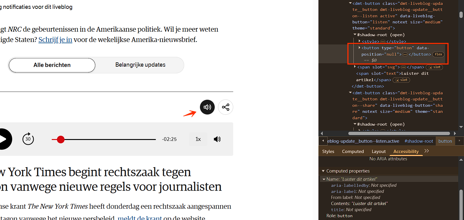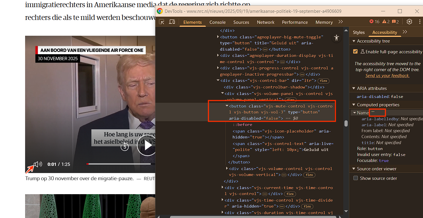 Dit probleem komt voor op de pagina: https://www.nrc.nl/nieuws/2024/12/21/testpagina-voor-digitale-toegankelijkheid-deel-2-a4912961 boven de tekst “Meer weten over digitale … Zaken en Koninkrijksrelaties.”