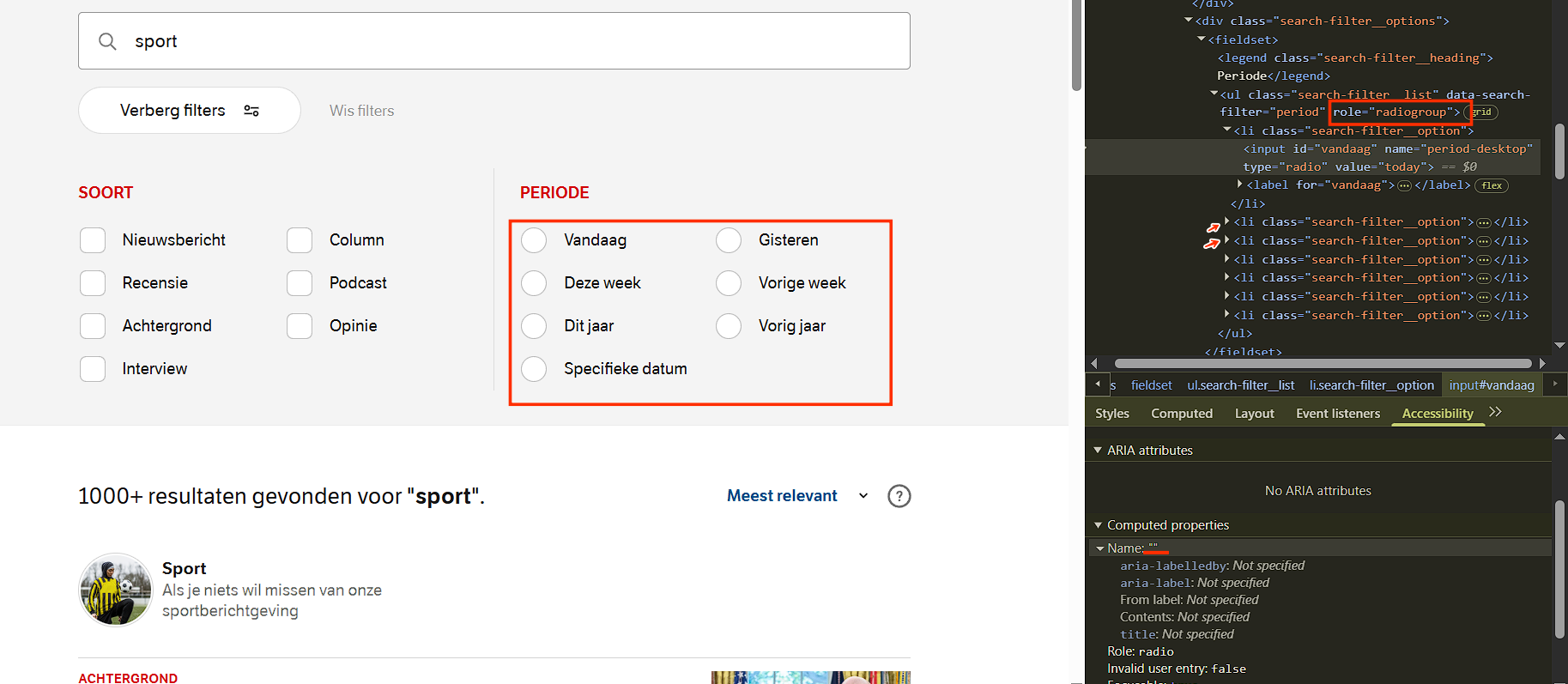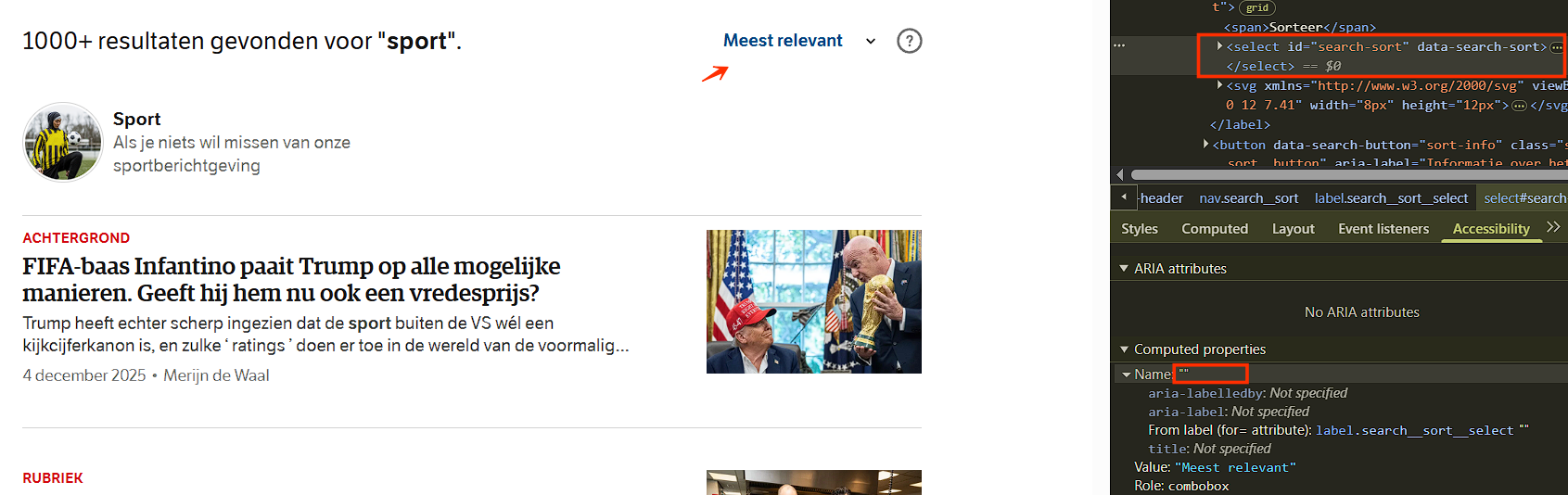 Sommige interactieve onderdelen worden door hulpmiddelen zoals schermlezers niet goed of helemaal niet voorgelezen. Dit komt vaak doordat onderdelen onterecht zijn verborgen voor deze hulpmiddelen of geen duidelijke naam hebben gekregen.