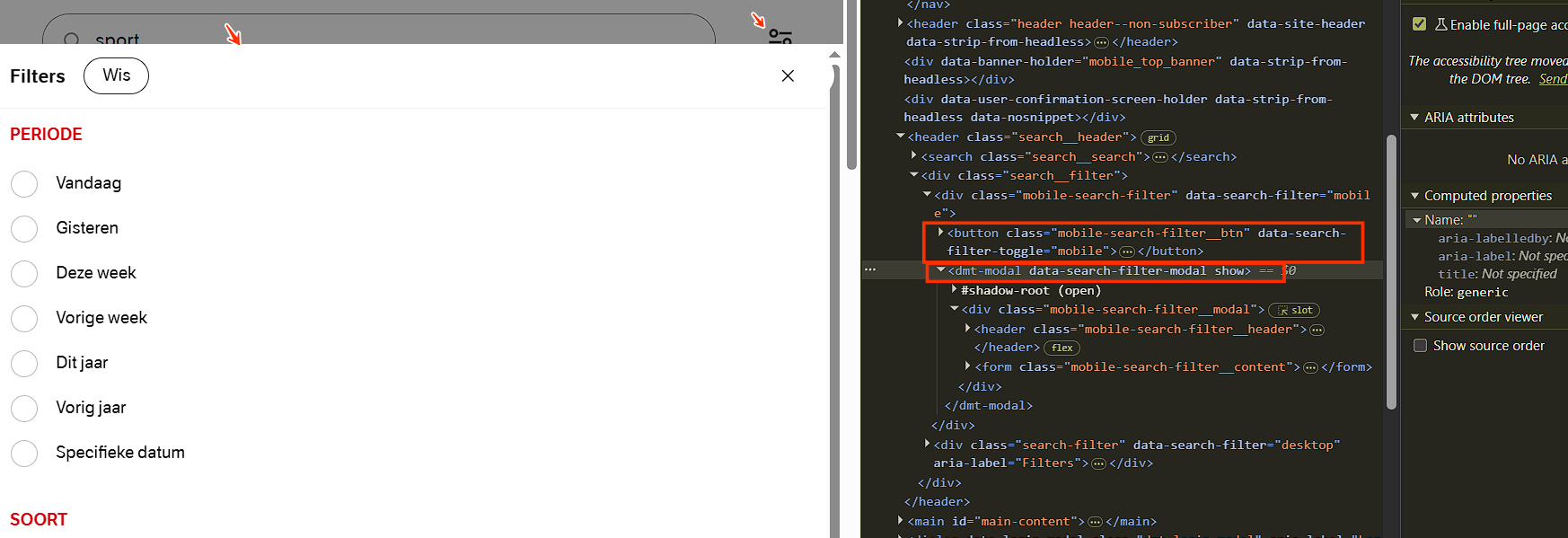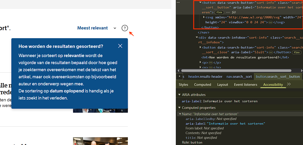 Het grootste deel van het onderzoek doen we met de hand. Voor een deel van de toegankelijkheidseisen gebruiken we automatische tools als ondersteuning, zoals axe-core en Chrome Developer Tools.