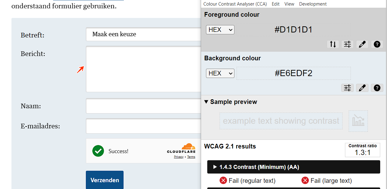 Tekst kleiner dan 24px heeft onvoldoende kleurcontrast