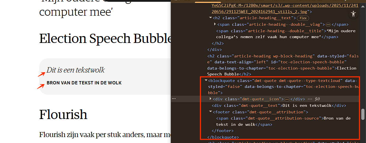 Op deze pagina, onder de kop “Election Speech Bubble”, is de tekst “Bron van de tekst in de wolk” geen citaat, maar is deze geplaatst in een blockquote-element.